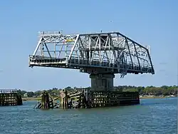 The Ben Sawyer Bridge is a swing bridge that connects the town of Mount Pleasant with Sullivan's Island in South Carolina. The bridge swings on its central axis to open for boat traffic which is too tall to clear the bridge, and has an operator's house in the center of the swing span from which a tender can operate the bridge. The bridge was originally constructed in 1945,[1][2] but the steel superstructure for the approach spans and swing span was replaced in 2010, albeit retaining the same general appearance.