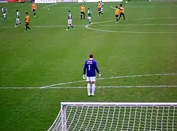 During the 2002–03 season, he was placed on the bench for the first team when Fabien Barthez was injured.[1] He was loaned out to several clubs during his career, including spells at Coventry City, where he did not play a competitive game, and Chesterfield, who were down to just one goalkeeper when Carl Muggleton was ruled out for around six weeks with a double stress fracture of the fibula.[1] Chesterfield manager Dave Rushbury said, "We must be doing something right because Manchester United don't let players out on loan unless they are confident they will be properly looked after. We have had the situation in hand following Carl Muggleton's injury and are delighted to welcome Ben Williams now that he is available to come on loan to us".[1] Manchester United agreed to allow Williams to stay with the Spireites for a second month, following the news that first team goalkeeper, Carl Muggleton, was not expected to be fit for a further few weeks.[2] In September 2003, he spent a month with Altrincham making six appearances.[3]