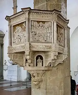 In 1480, he made the framework of the doorway of the Palazzo Vecchio in Florence. The marble pulpit in the Santa Croce[1] in Florence is considered his masterpiece. On the pulpit are scenes from the life of St. Francis of Assisi. Also in 1480, with his brother Giuliano, he built and made the sculptures for the little oratory of the Madonna dell'Olivo, outside Prato. The adolescent St. John of the Bargello is ascribed to the year 1481.