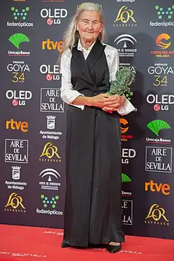 In 2020, at the age of 84, she won the Goya Award for Best New Actress.[9] She was the oldest actress to win the film award in this category,[10] being the second oldest in the categories of female performers only surpassed by Julieta Serrano, who won her first Goya award at the age of 87 in the same edition.[11]
