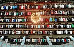 The Pala dynasty was followed by a shorter reign of the Hindu Sena Empire. Subsequent Muslim conquests helped spread Islam throughout the region.[102] Bakhtiyar Khalji, a Turkic general, defeated Lakshman Sen of the Sena dynasty and conquered large parts of Bengal. Consequently, the region was ruled by dynasties of sultans and feudal lords under the Bengal Sultanate for the next few hundred years. Many of the people of Bengal began accepting Islam through the influx of missionaries following the initial conquest. Sultan Balkhi and Shah Makhdum Rupos settled in the present-day Rajshahi Division in northern Bengal, preaching to the communities there. A community of 13 Muslim families headed by Burhanuddin also existed in the northeastern Hindu city of Srihatta (Sylhet), claiming their descendants to have arrived from Chittagong.[103] By 1303, hundreds of Sufi preachers led by Shah Jalal, who some biographers claim was a Turkistan-born Bengali,[104] aided the Muslim rulers in Bengal to conquer Sylhet, turning the town into Jalal's headquarters for religious activities. Following the conquest, Jalal disseminated his followers across different parts of Bengal to spread Islam, and became a household name among Bengali Muslims.
