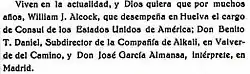 In 1930, José González Pérez published a book titled Historia del football en Huelva y su provincia ("History of football in Huelva and its province"), whose value comes from the crucial collaboration and insightful testimonial contributions of Daniel and Alcock, two former Huelva players who were still alive in 1929, when the book was being made.[2] At the time, Daniel lived in the town of Valverde del Camino, whose population had been introduced to football by him, who then founded Valverde FC and Deportiva, being its first president.[7] He was also the head of accounting for the Alkali and Buitrón Companies,[8] so when the director of the former, Carlos Kaesmacher, died in October 1929, Daniel was present in the subsequent tribute paid to him.[9]