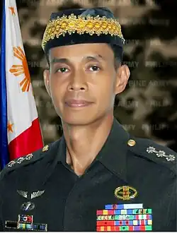 Benito Antonio Templo de León (born March 21, 1960)[1] is a retired military officer of the Armed Forces of the Philippines (AFP). While a Roman Catholic, he was conferred the rare Muslim-Maranao honorary title of Sultan a Romapunut[2] for his peace efforts.[3][4] De León held the Philippine Army rank of major general and was the commander of the 5th Infantry Division until his designation as Inspector General of the Armed Forces of the Philippines. He retired in 2016 after reaching the mandatory age of 56.[5]