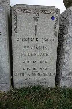Feigenbaum died on the morning of November 10, 1932, at the Home for Incurables in New York. He had been ill for the previous ten years, the last three of which he was paralyzed. Funeral services were held in Forward Hall, on November 13, 1932. Feigenbaum is currently buried in the Workmen’s Circle section of Mount Carmel Cemetery, in Queens, New York.[8]