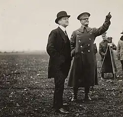In October 1917, he was transferred to France, and had the same responsibilities in France, the British Isles, and Italy.[21] In November 1917, he became Chief of Air Service, American Expeditionary Force, and assumed additional duties as a member of the Joint Army and Navy Aircraft Committee in France; representative of the commander in chief, American Expeditionary Forces on the Inter-Allied Expert Committee on Aviation of the Supreme War Council, and commandant of the Army Aeronautical Schools.[22] Resentment of Foulois's staff, with 112 officers and 300 enlisted men, most inexperienced and recently commissioned nonflying officers, led to strong criticism from Brigadier General Billy Mitchell, who commanded the Air Service Zone of Advance. In his memoirs, Mitchell wrote: