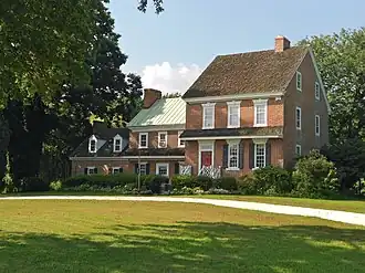 The original property expanded over 1,600 acres, with a ferry running to New Castle, Delaware. It now is 180 acres (73 ha). The original house was built c. 1729, but was looted and burned by the British during the American Revolutionary War. It was later rebuilt by Colonel Benjamin Holme, adding the east section of the house c. 1784. Holme had fought in the Battle of Quinton's Bridge. The two and one-half story brick house features Jersey Georgian architecture.[3]