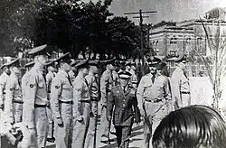 Early in 1941, the Roosevelt administration, in response to public pressure for greater black participation in the military as war approached, ordered the War Department to create a black flying unit. Captain Davis was assigned to the first training class at Tuskegee Army Air Field (hence the name Tuskegee Airmen). In July 1941, Davis entered aviation cadet training with the Tuskegee Airmen's first class of aviation cadets, Class 42-C-SE.[7] On March 6, 1942, Davis graduated from aviation cadet training with Captain George S. Roberts; 2nd Lt. Charles DeBow Jr. (Feb 13, 1918 – April 4, 1968),[8] 2nd Lt. Mac Ross (1912–1944),[9] and 2nd Lt. Lemuel R. Custis (1915–2005). Davis and his four classmates became the first African American combat fighter pilots in the U.S. military.[10][11]
