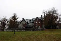 The groundbreaking ceremony for Bennington College took place on August 16, 1931, and construction of the original Bennington College campus was completed by 1936. The Boston architectural firm, J.W. Ames and E.S. Dodge designed Commons, the 12 original student houses, as well as the reconfiguration of the Barn from a working farm building into classrooms and administrative offices. The original student houses were named for the people integral to the founding of the college. The campus was built by more than 100 local craftsmen, many of whom had been out of work since the stock market crash of 1929.[4] The campus stretches 440 acres with main campus centered on 10 acres. There are 300 wooded acres, 15 acres of wetland, and 5 acres of tilled farmland.