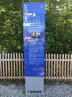 In 1928, Benno Arnold had acquired the spacious "Sieben Eichen" estate in Holzhausen am Ammersee. At the end of 1938, he was forced to sell the stately property to the municipality for a nominal price. The new owners were the Munich building contractor Fritz Schönmann and his wife Marion who were close to Adolf Hitler and Eva Braun.[3] After the Allies defeated Nazi Germany, the estate was returned to the surviving heirs. On 27 January 2022, Holocaust Remembrance Day, at the request of the "Jewish Museum Augsburg Swabia" Foundation in Holzhausen am Ammersee, "Seehholzstraße 1-3" was unnamed "Anna und Benno Arnold-Platz".[4][5]