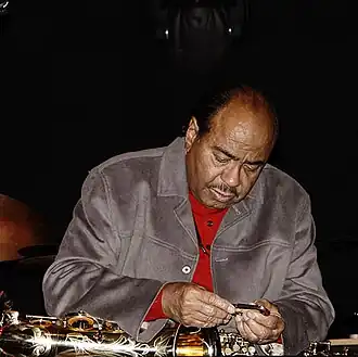 He was born Benny Golson in Philadelphia, Pennsylvania, on January 25, 1929.[1][2] His father, also Bennie Golson, left the family early. His mother Celadia brought the family up, working as a seamstress and a waitress.[3] Golson witnessed racism first at age eight on a trip to Georgia with an uncle.[3] He began taking piano lessons at age nine;[4] his interest in music was nurtured at Benjamin Franklin High School in Philadelphia giving him ambitions to become a concert pianist;[3][5] he was fascinated by the music of Brahms and Chopin.[6] At age 13, he was taken to New York's Minton Playhouse, where bebop was born, and he experienced some bop pioneers including Thelonious Monk.[3] He saw Lionel Hampton's band, featuring Arnett Cobb on tenor saxophone, at Philadelphia's Earle Theatre.[1][3][4] Inspired, he switched to the saxophone at age 14.[4] At the high school, he played with several other promising young musicians, including John Coltrane, Red Garland, Jimmy Heath, Percy Heath, Philly Joe Jones, and Red Rodney.[3][6] He later attended Howard University.[1][3]