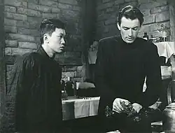 ![]() Fong (left) and Gregory Peck in a publicity photo for The Keys of the Kingdom (1944) | |