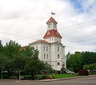 The Benton County Courthouse is a courthouse building located in Corvallis, Benton County, in the U.S. state of Oregon. Built in 1888, the facility is regarded as the oldest county courthouse in Oregon still being used for its original purpose. It is listed on the National Register of Historic Places.[2]