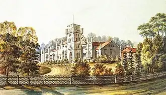 It was built in 1840 by Adolf Czapski and modified in 1885–1887. The palace in Neo-Gothic style consists of some parts with one or two floors, connected to a four-floor tower where the main entrance is situated.[3]
