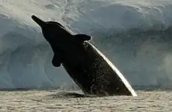 Arnoux's beaked whales inhabit great tracts of the Southern Ocean. Large groups of animals, pods of up to 47 individuals, have been observed off Kemp Land, Antarctica.[39] Beachings in New Zealand and Argentina indicate the whale may be relatively common in the Southern Ocean between those countries and Antarctica; sporadic sightings have been recorded in polar waters, such as in McMurdo Sound.[40] It has also been spotted close to South Georgia and South Africa, indicating a likely circumpolar distribution. The northernmost stranding was at 34 degrees south, indicating the whales inhabit cool and temperate, as well as polar, waters. There is no stock report for the Arnoux's beaked whale to date by NOAA.