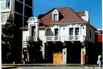 The foundation stone was laid on 15 October 1910 by Mrs D.W.Sims, mayoress of Johannesburg. She was the sister of Harry Graumann who was the mayor at that time, and the first Jewish mayor of Johannesburg. The first fire engines were horse drawn and were later motorized.[3] After World War I petrol driven engines were used.[4] The fireman's quarters were rebuilt around 1960.[3] The dormer windows and garages were later additions.[5]