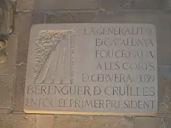 Berenguer de Cruïlles (Peratallada, 1310 – Barcelona, 1362) was the bishop of Girona (1349–1362) and the first president of the Generalitat de Catalunya (1359–1362), nominated by the Catalan Courts held in Cervera in 1359.[1][2]
