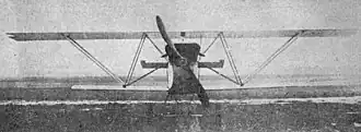 - was an unequal-span biplane of conventional wood and fabric construction. The fuselage structure included an open cockpit for the pilot just aft of the upper wing trailing edge. It had a fixed tailskid type landing gear. Powered by a Hispano-Suiza inline engine.