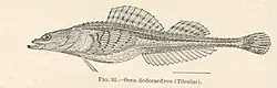 - ^ Tilesius, W. G. von, 1813 [ref. 13413] Iconum et descriptionum piscium Camtschaticorum continuatio tertia tentamen monographiae generis Agoni blochiani sistens. Mémoires de l'Académie Impériale des Sciences de St. Petersbourg v. 4 (for 1811): 406-478, Pls. 11-16.