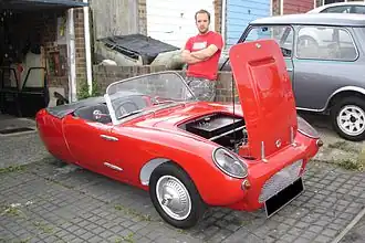 The Berkeley automobile was a collaboration between designer Lawrence "Lawrie" Bond and the Berkeley Coachworks factory owned by Charles Panter, which at the time was one of the largest manufacturers of caravans in Europe.[2] It was an ideal project for Berkeley, who had developed considerable skills in the use of Glass-reinforced plastic[3] (GRP), and were looking for something to fill the gaps in the very seasonal caravan market. What Panter and Bond wanted to achieve was "something good enough to win World 750cc races... but cheap, safe, easily repairable and pretty."[4]