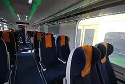 Each train is six coaches long, using specially branded carriages provided by both DB and PKP - the livery is white, as per DB Intercity, but with a dark blue stripe instead of the normal red. Four of them (three full 2nd class and handicap car) are provided by PKP, Restaurant/1st class and first class are delivered by DB.