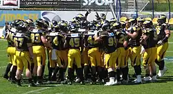 The 2011 season was not as successful for the club, making a losing appearance in the Eurobowl, finishing only fourth in the league and going out in the quarter-finals of the playoffs to the Schwäbisch Hall Unicorns.[11] In 2012, the club came second in the northern division of the GFL and qualified for the play-off where it was knocked out by the Schwäbisch Hall Unicorns in the semi-finals. The team again reached the semi-finals of the playoffs in 2013, this time losing to the Dresden Monarchs.