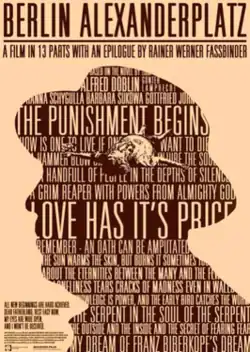 Berlin Alexanderplatz (German: [bɛʁˈliːn ʔalɛkˈsandɐˌplats]), originally broadcast in 1980, is a 14-part West German crime television miniseries, set in 1920s Berlin and adapted and directed by Rainer Werner Fassbinder from Alfred Döblin's 1929 novel of the same name. It stars Günter Lamprecht, Hanna Schygulla, Barbara Sukowa, Elisabeth Trissenaar and Gottfried John. The complete series is 15 hours (NTSC and home media releases expand the runtime by half an hour).