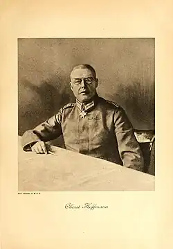 2. ^ Max Hoffmann held various functions in the staffs of the armies deployed on the Eastern Front, then in the Ober Ost from August 17, 1914.