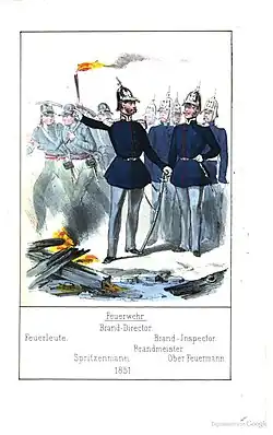 - ^ Wolfgang Hornung-Arnegg: Feuerwehrgeschichte. Kohlhammer, 4. Auflage. 1995, ISBN 3-17-013203-2, S. 85.