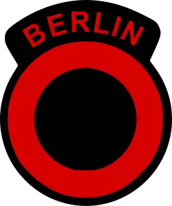 The Berlin Infantry Brigade was formed in October 1953 out of the force called "Area Troops Berlin" and consisted of some 3,100 men in three infantry battalions, an armoured squadron, and a number of support units. Its shoulder sleeve insignia was a red circle over a black background with the word Berlin in red on a black background running around the top.[1] It was not initially part of the British Army of the Rhine despite being based in Germany.[2] However, by the mid-1980s, the brigade is recorded to have become part of the BAOR, being its second major component after I (BR) Corps.[3]
