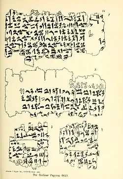 - ^ Schack-Schackenburg, Hans (1900), "Der Berliner Papyrus 6619", Zeitschrift für ägyptische Sprache und Altertumskunde (in German), 38 (1): 135–140, doi:10.1524/zaes.1900.38.jg.135, S2CID 193647129