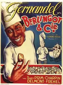 Berlingot and Company (French: Berlingot et compagnie) is a 1939 French comedy film directed by Fernand Rivers and starring Fernandel, Suzy Prim and Fernand Charpin.[1] It was shot at Marcel Pagnol's Marseille Studios. The film's sets were designed by the art director René Renoux.