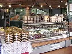 In 1999 the company opened a retail bread shop and pâtisserie at its factory location.[10] This store displays full lines of packaged and unpackaged breads, rolls, pitas, cakes and pies, plus a large refrigerated selection of pastries, and sale of hot and cold drinks. Aproned pastry makers can be seen at work through plastic windows at the back of the shop.