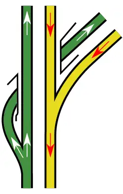 The first example of a flying junction in the United Kingdom was the Weaver Junction that opened on 13 November 1881. Here the grade separation was used to raise one track over the oncoming mainline on a double junction.[4]
