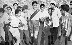 Ferreyra had participations in Argentine cinema, debuting as actor in the movie El Cañonero de Giles (1937) written and directed by Manuel Romero. The title is a parody of Ferreyra's nickname El Mortero de Rufino while the movie narrated, in a comical tone, the life of a footballer (Luis Sandrini) from San Andrés de Giles that remarkably increased the strength of his shot when hearing the barking of a dog.[17] The football scenes were filmed at River Plate Stadium, with Ferreyra and other players of the club making some cameos.[18]