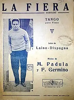 Argentine tango La Fiera, dedicated to Bernabé Ferreyra,[19] was recorded by Francisco Canaro and his orchestra in 1932. The song was composed by Francisco Laino and Adolfo Dispagna (lyrics) and Miguel Padula and Federico Germino (music).[20]