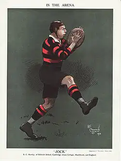 Major Bernard Charles "Jock" Hartley OBE (16 March 1879 – 24 April 1960)[1] was a rugby union international player who represented England from 1901 to 1902. At club level he represented Cambridge University and Blackheath. In 1938 he was given the role of team manager of the British Isles team on their tour of South Africa.