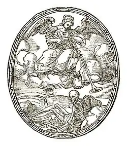 He was commissioned to provide decorations for Ippolito II d'Este in 1540, Henry II of France in 1548, and Jacques Dalbon, Seigneur de Saint Andre in 1550.[2] He worked closely with the printer Jean de Tournes to design, engrave, and illustrate many types of books such as emblem books, documentaries and scientific works, and literary works, including the Bible and Ovid's Metamorphoses (Lyon, Tournes, 1557). Salomon's figures were inspired by the elegant Mannerist art of the School of Fontainebleau, and were inspiration for engravers working in Lyon and became widely distributed and copied.[2]