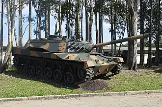 The Bernardini MB-3 Tamoyo was a Brazilian main battle tank designed by Bernardini; however, it never reached production status and it never passed beyond the prototype stage (1983). It was followed by the EE-T1 Osório in 1984, the EE-T2 Osório in 1985, and the Tamoyo III in 1987.[1] The tank was armed with a 90mm gun and carried 68 rounds of ammunition.[1]