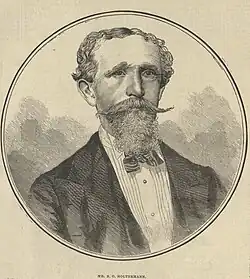 Bernhardt Otto Holtermann (29 April 1838 – 29 April 1885[1][2]) was a successful gold miner, businessman, politician and photographer in Australia. Perhaps his greatest claim to fame is his association with the Holtermann Nugget, the largest gold specimen ever found, 59 inches (1.5 m) long, weighing 630 pounds (290 kg) and with an estimated gold content of 3,000 troy ounces (93 kg), found at Hill End, near Bathurst, New South Wales.[3] This gave him the wealth to build a mansion in North Sydney.[1]