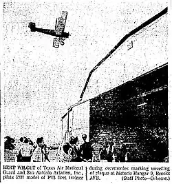 - ^ "Plaque Unveiled, Hangar Commemorated". San Antonio Light. San Antonio Texas. San Antonio Light. 15 Aug 1967. p. 9. Archived from the original on 15 March 2025. Retrieved 15 March 2025 – via NewspapersArchive.com.