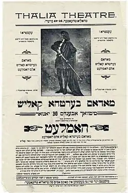 According to Yiddish theatre scholar Joel Berkowitz, Shakespeare's plays served "as both sources and symbols" in helping Jewish immigrants "cross the bridge from Yiddish to American culture."[5] It didn't hurt that fans compared Kalich to another famous female Hamlet of the era, Sarah Bernhardt, and in fact many newspapers would go on to call her the "Jewish Berhardt" in the years to come.[5]