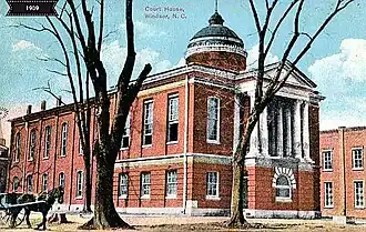 Bertie County Courthouse is a historic courthouse building located at Windsor, Bertie County, North Carolina. It was built in 1889, and is a 2 1/2-story, brick Neoclassical-style building with a gable roof topped by a polygonal cupola. In 1941, the portico was enlarged and wings added to the main block. A rear addition was built in 1974.[2]