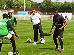 ![]() Bertrand Reuzeau warms up his players before the PSG B - Sochaux B match on April 24, 2011. | |||