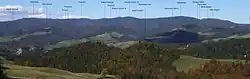 According to Slovak geographers, Beskid Sądecki is part of Ľubovnianska vrchovina.[2] The separation of the ranges was done by Poland, during the regionalisation of mountains made by Jerzy Kondracki, which the mountain range is named by in Slovakia. Some Polish geographers state that the Slovak part of the Radziejowej Range can be linked with the Ľubovnianska vrchovina, the name Lubowelskie Upland is also used.[3] According to these Polish geographers the names Radziejowej Range and Ľubovnianska vrchovina are only used when explaining the border, and should actually be one mountain range. This overview of the separation of one mountain range is not primarily discussed by other Polish geographers who believe that the Slovak mountain range should be treated as a separate physio-geographic region.