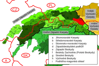 ![]() Location of Beskid Sądecki, marked by red color and labeled with h1 | |