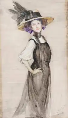 In 1911, she returned to London and resided in Church Street, Chelsea. She exhibited at the Royal Academy of Arts, the New Society of Artists and the Paris Salon between 1908 and 1936,[1] the Grosvenor Gallery and the Goupil Gallery. She was commissioned to paint the miniatures in Queen Mary's Dolls' House, produced 1921-4, currently on display at Windsor Castle.[4] Francis Derwent Wood's bronze bust of her (1922) was purchased by the Chantrey Bequest for the Tate in 1926.[5] A large one-man show of her work was held at Walker's Galleries in 1938. She died in London in 1939.