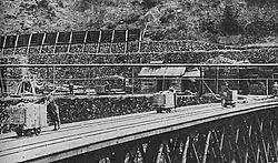 The Besshi copper mine (別子銅山, Besshi dōzan) was a rich source of copper in Niihama, Ehime Prefecture, Japan. The deposits were discovered in 1690, and copper mining began in the following year. From then until the closing of the mine in 1973, Besshi produced about 700,000 tons of copper, and contributed to Japan's trade and modernization. The Sumitomo family managed the mine, which helped build the Sumitomo zaibatsu. The Dōzan River was named after the copper mine.