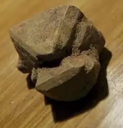 Betafite is a mineral group in the pyrochlore supergroup, with the chemical formula (Ca,U)2(Ti,Nb,Ta)2O6(OH). Betafite typically occurs as a primary mineral in granite pegmatites, rarely in carbonatites. Originally defined by the B-site atom Ti,[5] the development of new nomenclature for mineral names[6] led to modernization of the system for nomenclature of pyrochlore and betafite in order to further rationalize the naming process of this grouping of minerals. Only two of the mineral species that were formerly recognized as betafite[7] are presently retained.[5] They are oxyuranobetafite and oxycalciobetafite. The term betafite is now a synonym or varietal group name under the pyrochlore super group.[8]