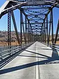The Bethanga Bridge is a steel truss road bridge that carries the Riverina Highway across Lake Hume, an artificial lake on the Murray River in Australia. The dual heritage-listed[1][3] bridge crosses the border between the Australian states of New South Wales and Victoria, linking the Victorian towns of Bellbridge and Bethanga with the regional New South Wales city of Albury.