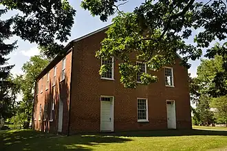 Bethel Memorial Church, also known as Bethel Baptist Memorial Church, is a historic Baptist church building located at White Post, Clarke County, Virginia. It replaced an earlier log Quaker meeting house, used by the Baptist congregation from 1808. Bethel was built between 1833 and 1836, and is a two-story, rectangular brick church in the Federal style. It has a front gable roof. The interior features many well-preserved elements including oil lamps installed in 1874 and grain painted pews. The front of the church features separate entrance doors for men and women. Also on the property is a contributing church cemetery.[3][4]